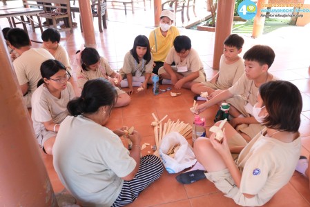 และในช่วงบ่าย เด็ก ๆ ได้เรียนรู้และทดลองปฏิบัติในกิจกรรมฐานการเรียนรู้ภูมิปัญญาไทยจากวิทยากรท้องถิ่น