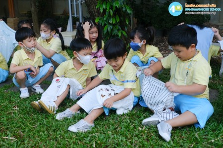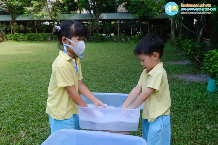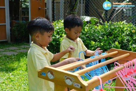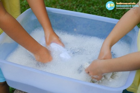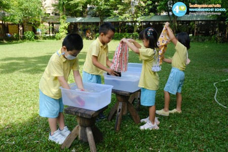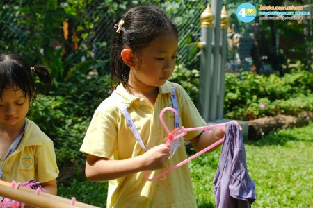 น้องอนุบาล ๓ ได้ทำกิจกรรมซักผ้า ตากผ้า