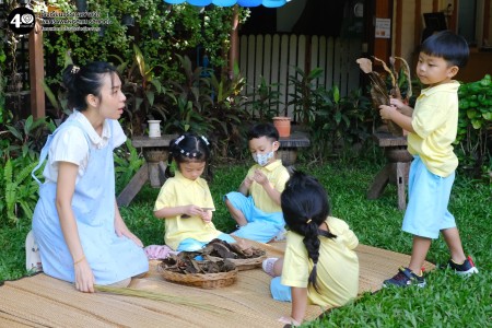 น้องอนุบาล ๑ ได้เข้าฐานกิจกรรมใบไม้แสนสนุก