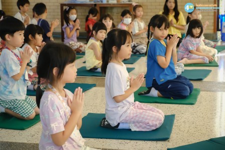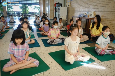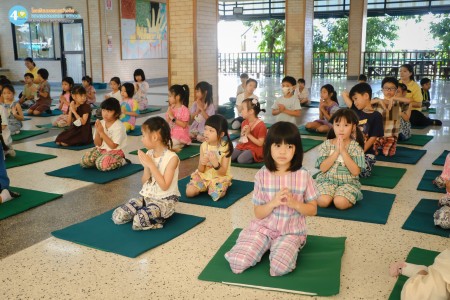 เด็ก ๆ ได้ฝึกนั่งสมาธิอย่างตั้งใจ เพื่อให้จิตใจสงบและมีสติ
