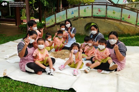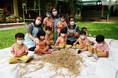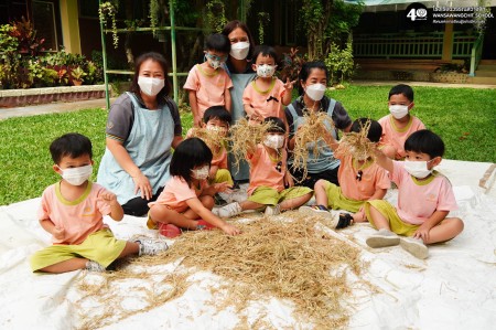 เด็ก ๆ ตื่นเต้นที่ได้เห็น ได้สัมผัสเมล็ดข้าวสีขาว และดมกลิ่นหอมอ่อน ๆ
