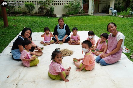 ด้วยมือเล็ก ๆ ที่เต็มเปี่ยมไปด้วยความมุ่งมั่นตั้งใจ ไม่นานนัก ก็ได้เมล็ดข้าวเต็มตะกร้า