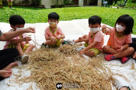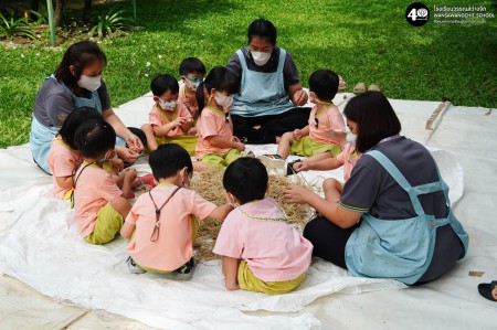 ในสัปดาห์นี้ เด็ก ๆ ได้ลงมือช่วยคุณครูแกะเมล็ดข้าวออกจากรวงข้าว