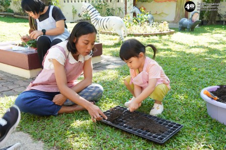 โดยเมื่อวันจันทร์ที่ผ่านมา เด็ก ๆ ได้ช่วยคุณครูพรวนดินที่แปลงเกษตร และหลังจากนั้นได้ช่วยกันเพาะเมล็ดพันธุ์ผักในกระบะ