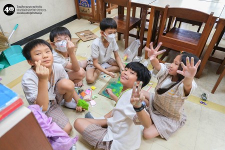 เด็กๆได้ทำการสรุปความรู้ที่ได้เรียนมา ผ่านการลงมือทำชิ้นงานร่วมกัน