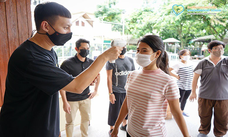 เริ่มตั้งแต่ลงจากรถ มาตรการก่อนเข้าโรงเรียน สวมหน้ากาก > ตรวจวัดไข้ > ติด Sticker > เดินผ่านถาดฆ่าเชื้อที่รองเท้า > กดเจลล้างมือและเดินตามเส้นที่กำหนด รวมไปถึงการนั่งเรียนภายในห้องและการใช้ชีวิตประจำวัน กิจวัตรและกิจกรรมการเรียนต่างๆตามมาตรการป้องกันเชื้อโควิด-19 ของโรงเรียน โดยเฉพาะด้านการเว้นระยะห่างทางสังคม (Social Distancing)