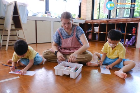 เป็นกิจกรรมที่เด็ก ๆ ได้ฝึกกล้ามเนื้อมัดเล็กการระบายสี