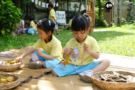 น้องอนุบาล ๑ ได้เข้าฐานกิจกรรมใบไม้แสนสนุก
