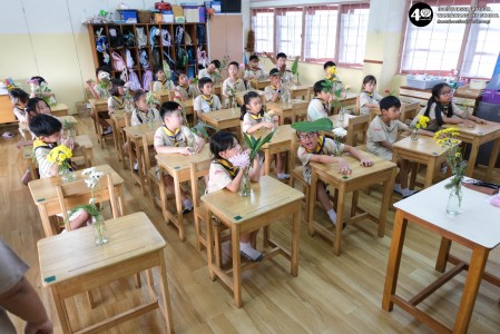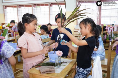 นักเรียนชั้นประถม ๒ เรียนรู้การจัดดอกไม้แบบโคริงกะ ⚘️